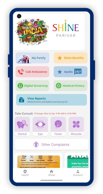 Experience the potential of school-based healthcare initiatives with the Apollo Shine Foundation. Understanding the concerns of parents during the home-to-school transition, we prioritize the safety and well-being of your children.Our dedicated medical team is always on hand to provide world class healthcare and reassurance. Say goodbye to anxious trips to school, we’ve got you covered! Also, participate in regular webinars or access your child’s reports through the SHINE Parivar app. This is how the schools of today are looking after their students.