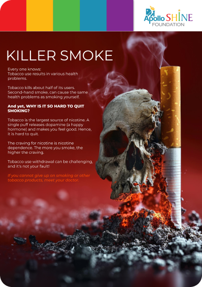 The Apollo SHINE Foundation was established in 2015 to raise awareness about Non-Communicable Diseases (NCDs) and equip the school and college community with the tools to combat this scourge. Since our inception, we’ve identified several issues within educational institutions that we can address:
